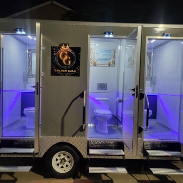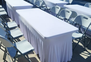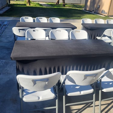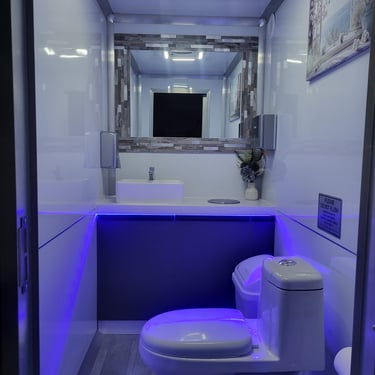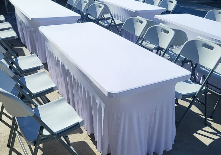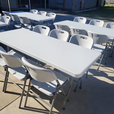 We offer Tables and Chairs and Portable Luxury Restrooms.